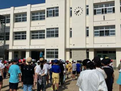 今日の児童朝会では、熱中症のお話を先生方がしてくれました。本格的に暑くなってきて、熱中症の危険が高まってきます。こまめに水分補給をしたり、外に出る時は必ず帽子をかぶったり、熱中症対策をしましょう。