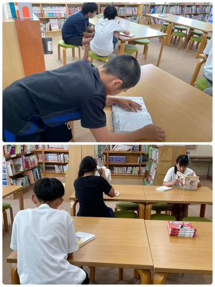 今日は漢字テストをしてから、図書室に行きました。図書の時間は大好きな6年1組です。1人で本を夢中で読む人や友だちと仲良く本を読む人がいます。これからもたくさん本を読んでもっともっと賢くなってほしいです!夏休みにも読書にチャレンジしてほしいですね。1週間、プールや学習をとっても頑張った6年生でした!1学期も残り数日です。最後まで楽しく過ごせるようにしたいです!