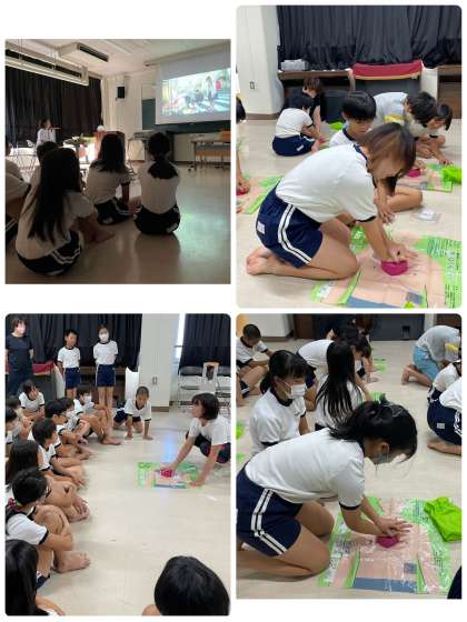 その後は実際にペアで心肺蘇生を経験しました。見ているより、難しかったようで音がなかなかならずに苦戦している人も多かったです。1分で助かる確率がどんどん下がっていくことも聞きました。小学生も自分にできることをしっかりすることが大切ですね。とてもいい経験ができました。まず学校にあるAEDがどこにあるのかを覚えておきましょう!