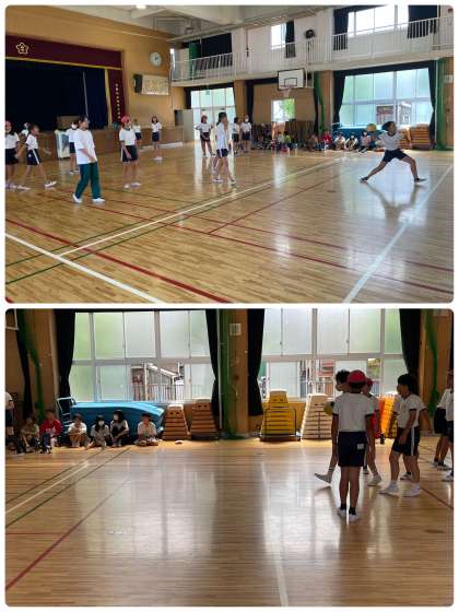 今日から6年1組に教育実習生が来てくれています!体育の時間には、交流を深めるために、一緒にドッジボールをしました。久しぶりにみんなでドッジボールをしたので、とても盛り上がりました。
