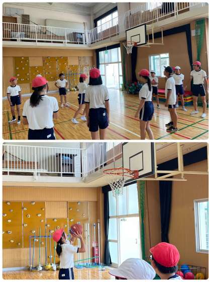 今日の体育はバスケットボールの学習をしました。ずっとマット運動だったので久々にボール競技の学習をすると言うと、最近のバスケットボールブームで大喜びでした。