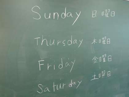 黒板に書かれた英語を見て天気を当てるクイズでは、日本語では分かるけど英語ではわからないという子が多く、繰り返し歌を歌ったり発音したりすることで少しずつ天気を英語で言えるようになってきていました!!
