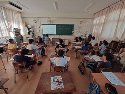 の三つの例文に出てくる子どもの好きなものを当てるゲームでは、それぞれの登場人物の好きなものを英語で答えることができました。