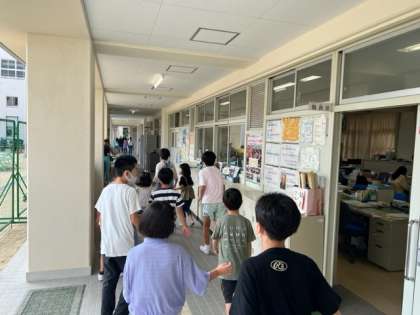 6年生が中心となり、たてわり班のみんなで、仲良くお店めぐりをしています。
