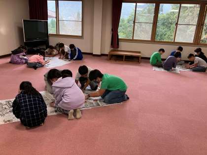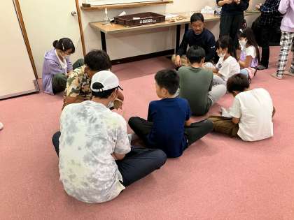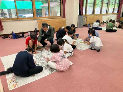 キーホルダー作りをしています。紙やすりで木を削り、きれいにしてから金具をつけます。世界に一つしかない、自分だけのキーホルダーを作っています。