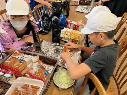 林間学習(5年生)カートンドッグ作りNO1