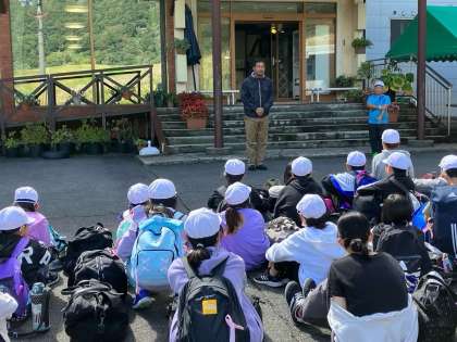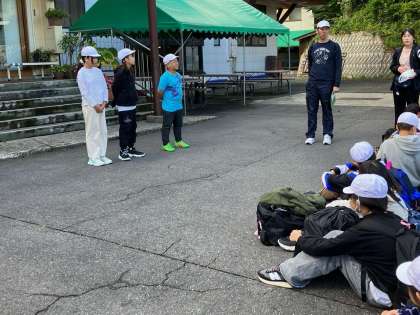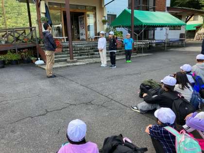 閉舎式の様子です。お世話になったみやま荘のご主人さんにあいさつをして、大阪に向けて出発します。
