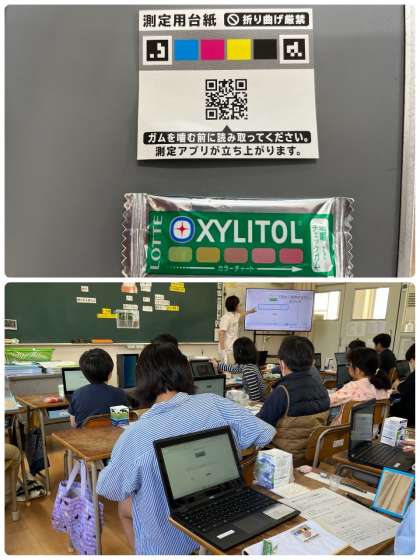 そして、フッ化物や虫歯の原因、唾液の働きなどについて教えていただいた後、咀嚼(そしゃく)ガムを噛んで、自分の噛む力がどれだけあるかをチェックしました。