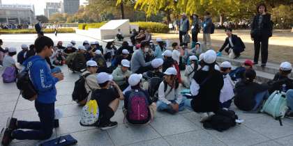 今から3つのグループにわかれて、平和記念公園のフィールドワークを行います。