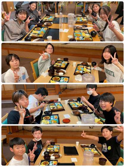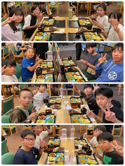 子どもたちの楽しみは、夕飯でした!豪華だということで、ワクワクしていました。ハンバーグに唐揚げなど子どもたちが大好きなものばかりでした!ご飯やお味噌汁はおかわり自由だったので、4杯も食べた人もいました!笑