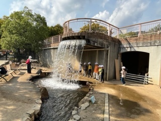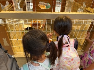 1.2年生、お昼ご飯の後はふれあい広場で、ウサギや馬などたくさんの動物達とふれあいました。