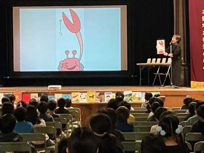 今日の2時間目に1.2.3年生に「絵本の講演会」をしてくれました。たくさんの絵本を読んでいただきました。体を動かしたり、じゃんけんをしたりと、とても楽しい時間を過ごしました。