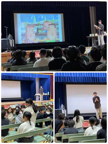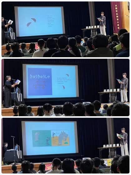 「てんてん兄弟」や「串かつやのよしこさん」などおもしろい絵本を紹介してもらいました。絵本は低学年のイメージがありましたが、全然そんなことはなく、全世代が楽しめる素晴らしい本なんだと分かりました!6年生もお気に入りの絵本を見つけてみてください!