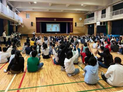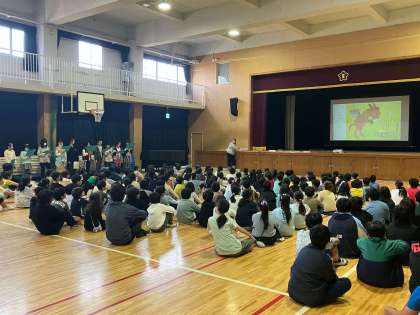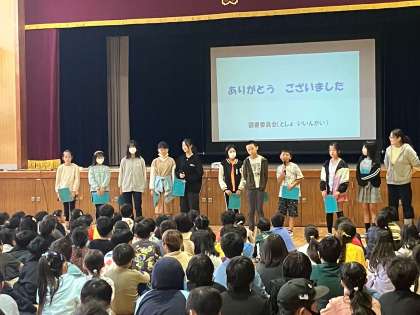 今日の児童集会は図書委員会のお友だちが読み聞かせをしてくれました。最後にはクイズもあり、みんな真剣に聞いていました。クイズはとても面白く、笑い声が聞かれるほどでした。