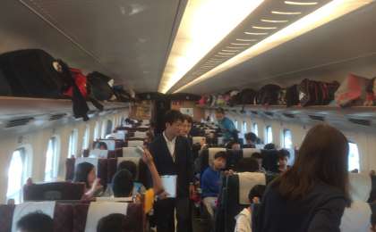 新幹線の中です。速さに驚いたのもつかの間、すぐに友達とワイワイきゃっきゃと楽しそうでした。