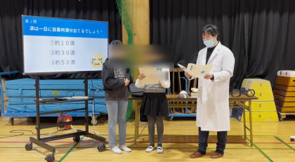 ☆眼科コーナーでは、健診の時に目にライトを当てている理由や、まつげや涙の役割について額田先生からお話していただきました。質問コーナーでは、近視や遠視についてのお話もしていただきました。