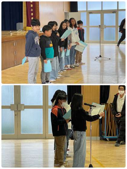1学期から計画してきた、放送委員会の委員会発表がありました。今回のテーマは情報モラルです。ネット依存症診断やオンラインゲームでのトラブル、カメラ撮影のマナー、アンチコメントの4つのグループに分かれて、スライドを使って発表しました!