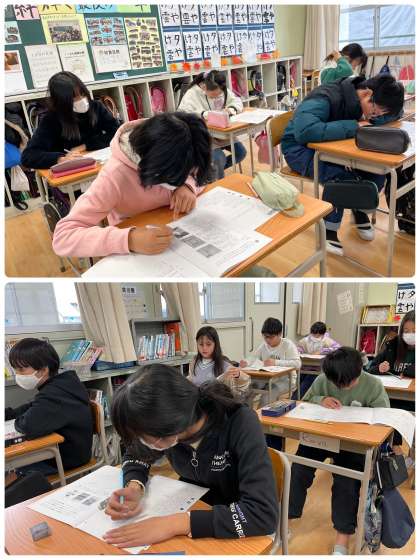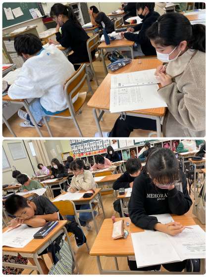 経年調査の1日目でした。今日の教科は、国語と社会です。国語は、特に最後の文章のところを重点的に練習し、書き切れるように努力してきました。本番の今日では、ほとんどの人が最後まで書き切ることができていました。