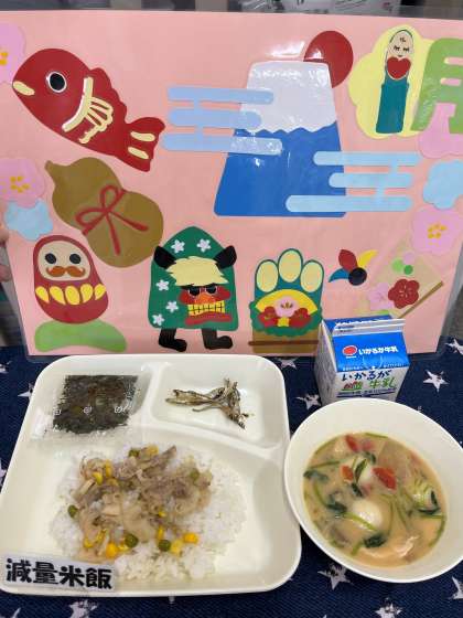 今日の給食には「ぞう煮」と「ごまめ」が出ます。