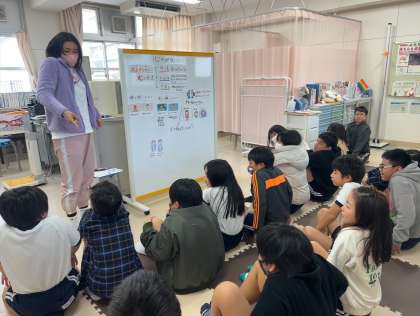 保健指導では、「心の健康」について学びました。もし悩みを抱えた際には、力いっぱい肩をあげた後にストンと肩をおろすこと、セルフハグをすること、6秒待ってから話すこと、周囲の人に相談すること等、様々な解決方法があることを教えていただきました。
