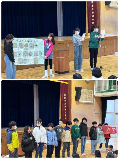 月曜日の朝の全校朝会では、6年生のがんばりがたくさん見られました!