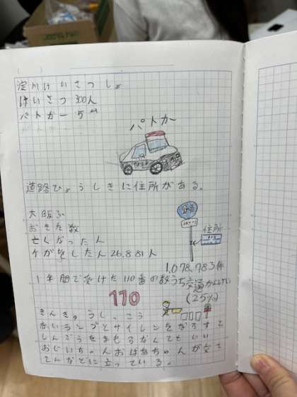 3年2組でも、ゲストティーチャーとして本校の生活指導支援員の方に、警察のお仕事を教えて頂きました。