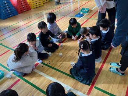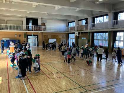 来年度入学予定のお友だちが神津小学校に来てくれて、1年生と「わくわくスタート」という取り組みをしました。1年生がお兄さんお姉さんになって、昔遊びを教えてあげて、一緒に遊びました。みんな楽しそうに過ごしていました。