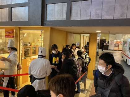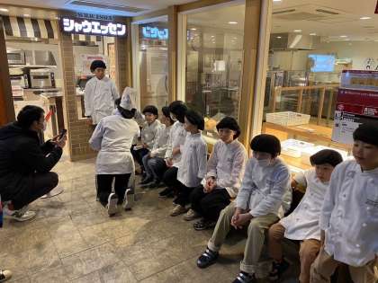 朝早くから出発し、キッザニア甲子園に到着し早速入場しています。1個目の人気アクティビティに並んでいます。予約が取れて満足気な様子です!たくさん体験して学んでほしいですね!