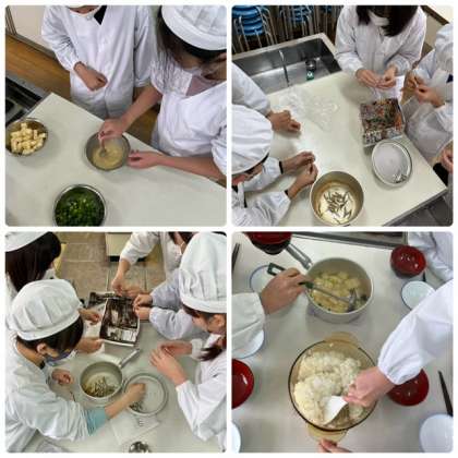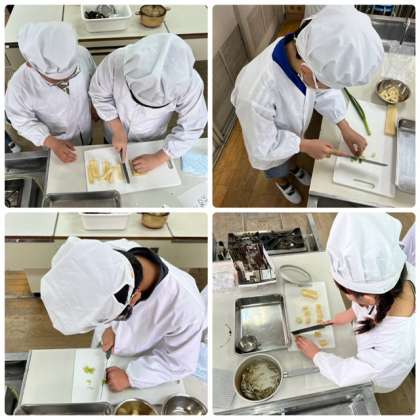 ご飯もお味噌汁も時間がかかりますが、鍋を火にかけている間に使わない調理器具を洗っておくなど、手際良くできる人が増えてきました。お家やホームでも、ぜひ作ってほしいと思います。明日は1組の調理実習です。頑張りましょうね!