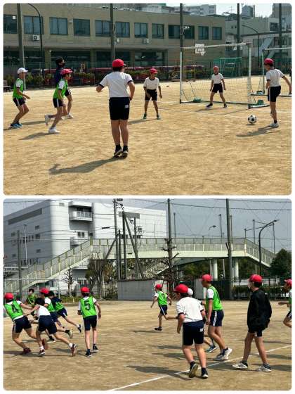男子も女子も楽しくサッカーをすることができました。なかなかパスが渡らず、苦戦しましたがゴールも入って、楽しい時間になりました。小学校で行ってきたたくさんの体育の時間を思い出しながら、次回も楽しくしましょう!