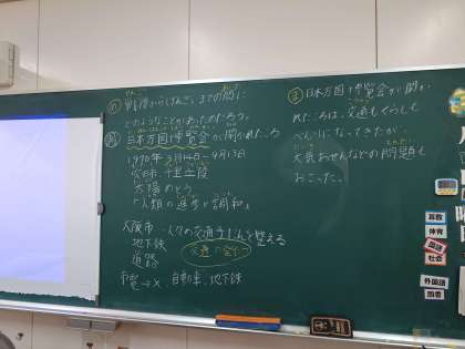 大阪の街の様子がどのように変化していったのかを教科書の写真や年表をもとに考えました。