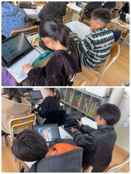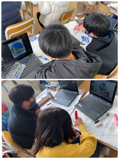 1年間で、様々な教科を通して絵を描いたり作品を作ったりしてきました。これらの作品を持ち帰るバッグに、子どもたちはそれぞれ自分の好きな絵を描いています。好きなキャラクターを描いたり、尊敬する選手のユニフォームを描いたりと、思い思いの絵が描かれており、どの作品バッグも素敵な仕上がりになってきています。いつもは元気いっぱいの5年生ですが、全員が静かに集中して描くことができましたね。
