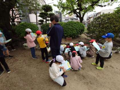 学校の中にある生き物を探しに行きました!