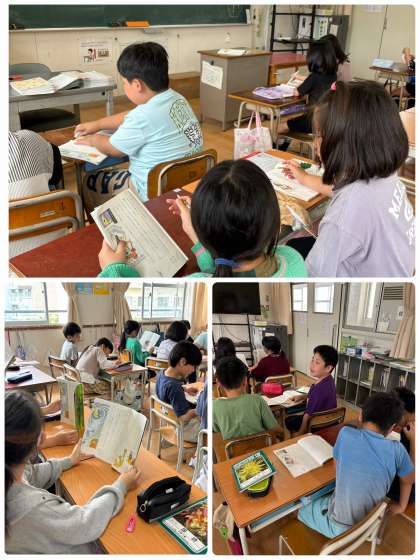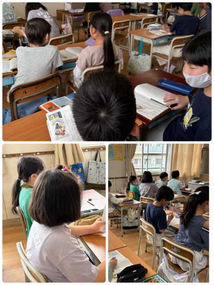 今日の国語の学習では、明日の音読発表に向けて、ペアで場面を選んだり、めあてを考えたりしました。そして練習をしました!