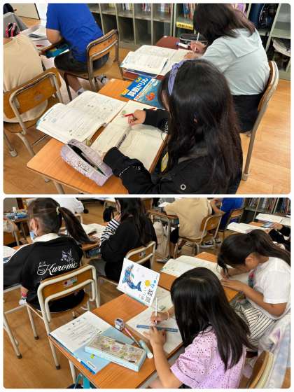 算数では、折れ線グラフと表の学習をしています。今日は20以下の目盛りを省いてかきました。昨日の学習より目盛りが大きくてかきやすかったようです!波線を使って省く場合があることがわかりました!全員が正確に点をとり、線を引くことができていました。1組も2組も混ざって楽しく学習しています。明日も頑張りましょう!