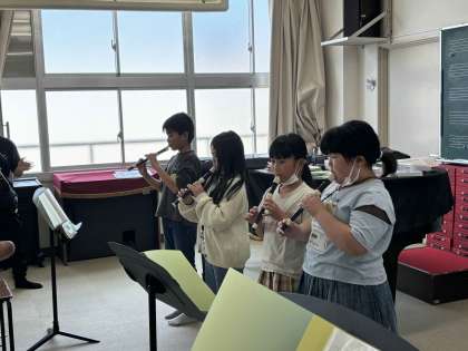 これまで練習してきた風のメロディーを上手に吹ける人が増えてきました。みんなの前でチャレンジする人も増え、全体的にレベルが上がりました。毎日宿題で聴いていただきありがとうございます。今後もよろしくお願いします!今後は下のパートにもチャレンジしていきます。