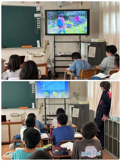 今日はNHK for schoolの動画を見て、ミツバチが気温の低い朝と夕方はあまり動かずに、昼に暖かくなると動き出すことがわかる動画でした。