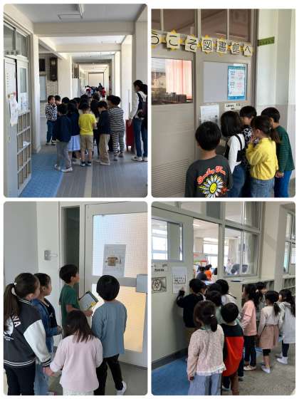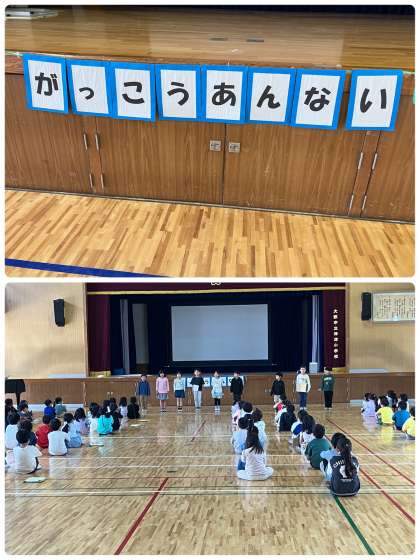 今日、1・2年生で「学校たんけん」をしました。2年生のお友だちが1年生のお友だちに学校内を案内します。
