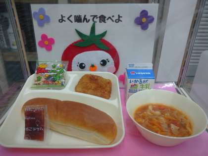 イタリア語で具だくさんという意味のスープです。たまねぎやにんじん、トマトなどを煮て作ります。今日の給食では、鶏肉とキャベツ、たまねぎ、トマト、にんじん、パセリなどの野菜が使われています。