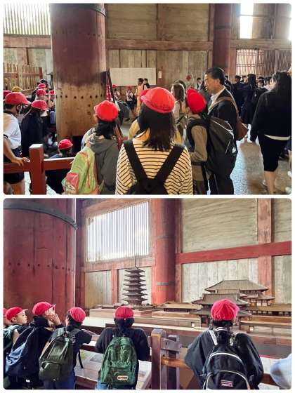 しばらく歩き、東大寺に到着。そして、ここからは班行動です!!大仏殿から三月堂までの長い距離を、班のメンバーと協力しながら進みました。