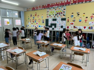 音楽の授業で、セブンステップとひらいたひらいたの曲を歌いました。ひざや手拍子を使って、リズム打ちを1人やペアでしました。はすのはなになってひらいたりつぼんだりをグループで踊りました。みんなで遊びながら楽しく歌うことが出来ました!