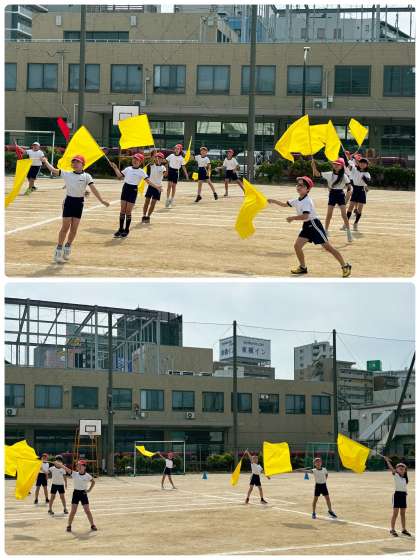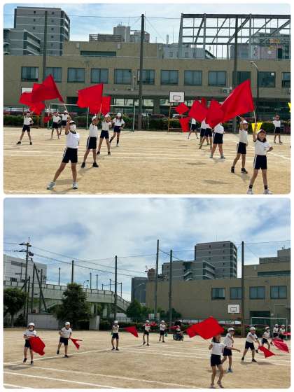 今日からいよいよフラッグを持ってダンスの練習をしました。何度も踊ってきたダンスでしたが、フラッグを持つといきなり難しくなり、難易度がぐっと上がったようです。