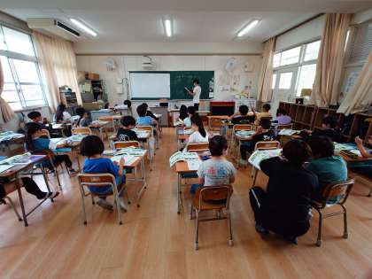 今日はアゲハチョウの幼虫がどのように成長していくのかをプリントで学習しました。