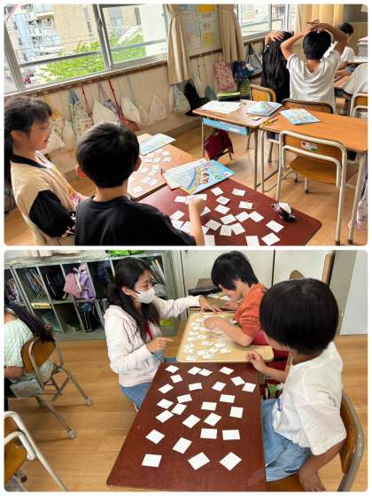 アルファベットカードのカードマッチングをしました。すごく盛り上がりながら、アルファベットを発音しながらカードを引いていました!遊びながらアルファベットを早く覚えられたらいいですね!