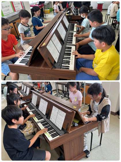 今日の音楽の学習では、以前リズム打ちした「楽しいマーチ」を全員がオルガンを弾きました。鍵盤は久しぶりでなかなか苦戦していましたが、何度も何度も練習していくうちに、弾けるようになっていました。シャープも出てくるのでそこが難しいポイントです!小さい音なので、なかなか自分の音が聞こえませんが、頑張って全員が弾けるようになってほしいです!