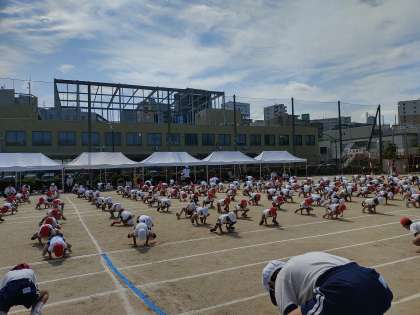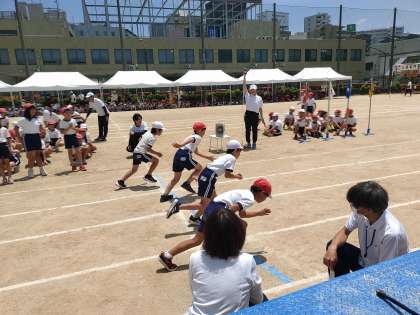 前日は雨のため本番が心配されましたが、当日は天候にも恵まれ、青空のもと、子どもたちは元気いっぱいに取り組むことができました。