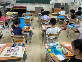 道徳の時間に、あとかたずけの学習をしました。身の回りの物が散らかっている状態とかたずけをしてる状態との見た目と心の気持ちの変化について話し合いました。話し合いの後、自分たちのお道具箱をかたずけ、「きれいになって心がすっきりした。」「かたずけたらきれいになって嬉しかった。」と言っていました。お家やホームでもあとかたずけを頑張って欲しいです!