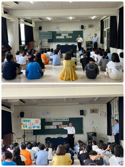 今日「非行防止・犯罪被害防止教室」のお話を「少年サポートセンター」の方たちがしてくれました。