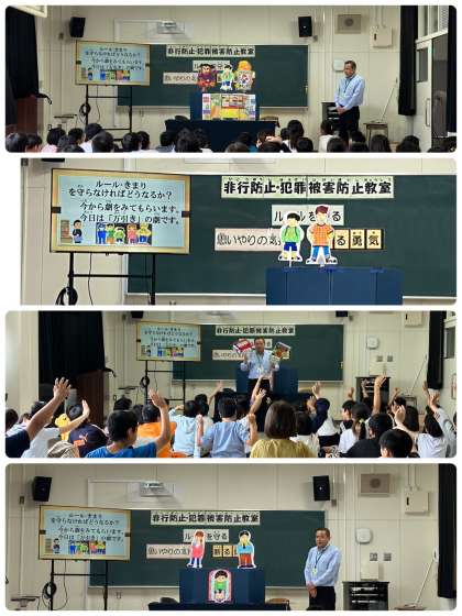 非行防止・犯罪被害防止するには、ルールを守ること、がまんすることが大切ということを教えてくれました。そして、誘われても勇気をもって断ること、思いやりの心をもつことが大切であるということもおしえてくれました。
