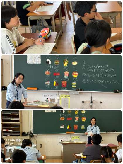 今日は、栄養教諭の方が来校されて、おやつについての授業をしてくれました。小さい頃は保育園や幼稚園でおやつの時間があったことを思い出し、今は毎日食べなくてもいいくらい、三食の食事で栄養をまかなえていることを知りました。